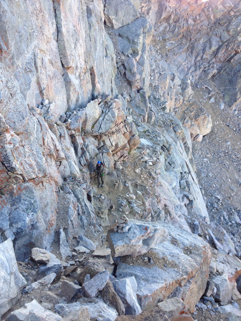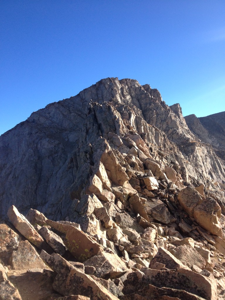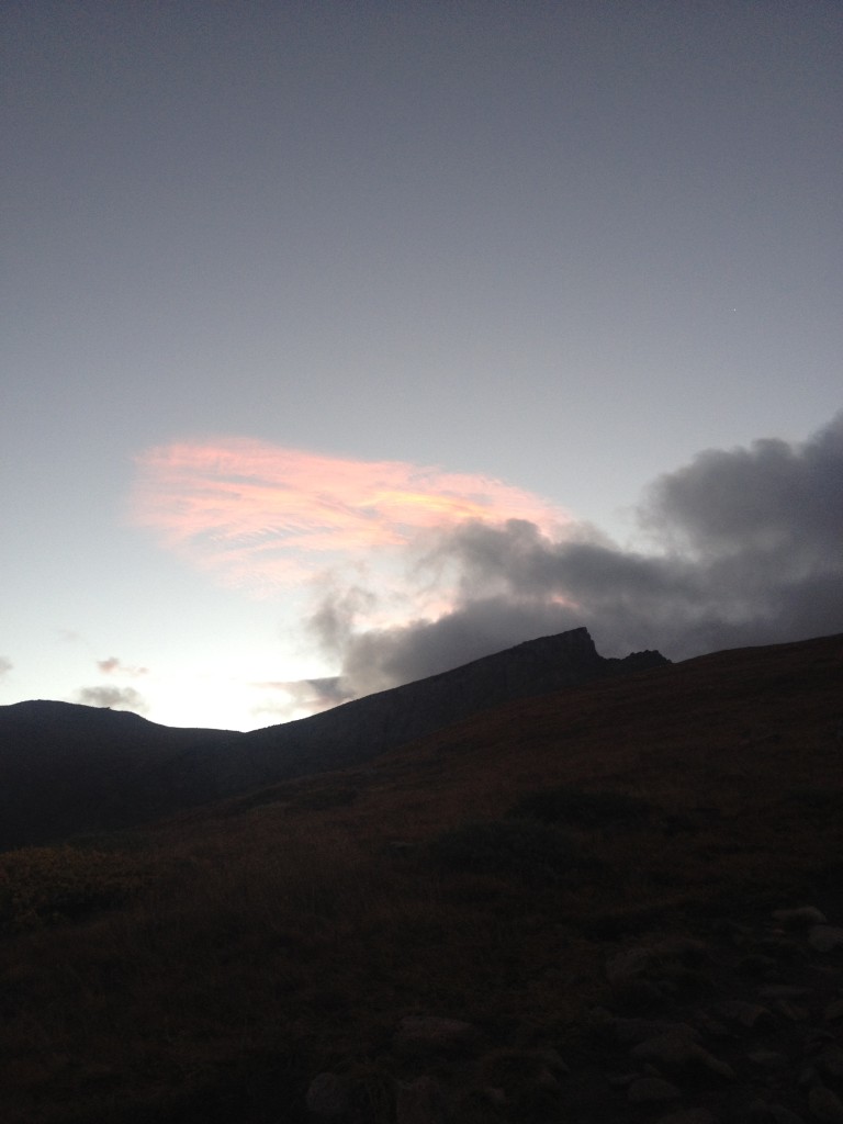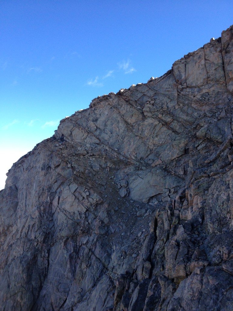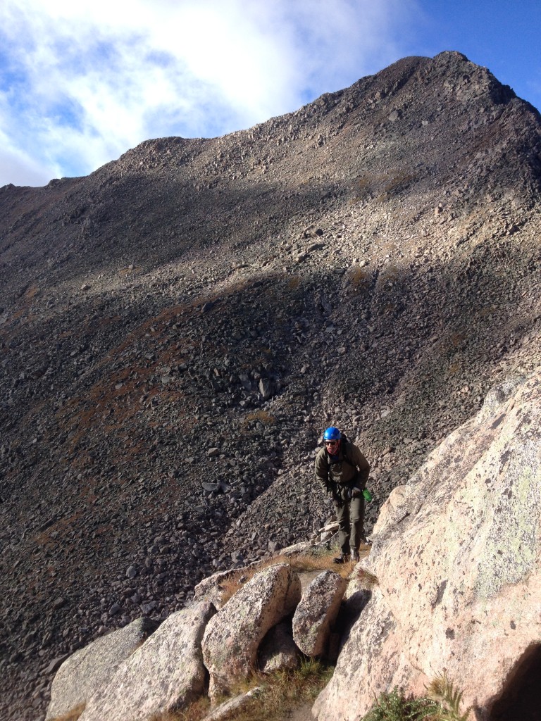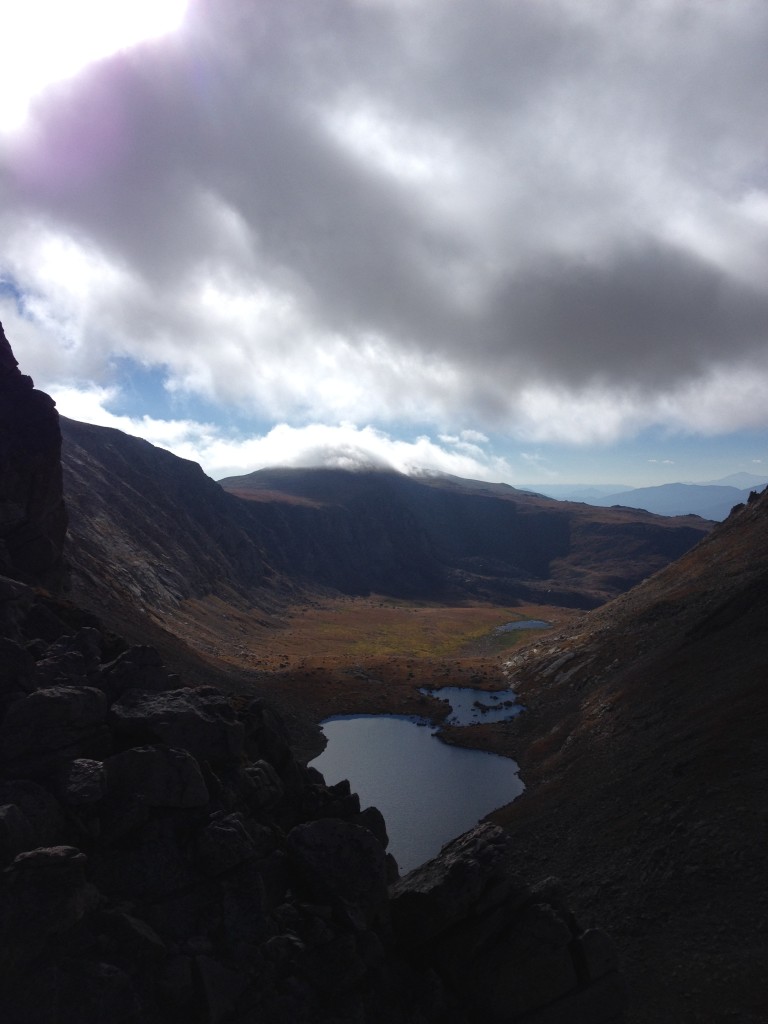 Looking to get our class 3 fix, Pat Johnson and I decided that the Sawtooth traverse between Mt. Bierstadt and Mt. Evans was good to go. We made our way from the trailhead around 5:45 AM and worked our way to the summit of Bierstadt. We did not waste much time on the summit with the mountains engulfed in clouds and a chilling temperature in the air.