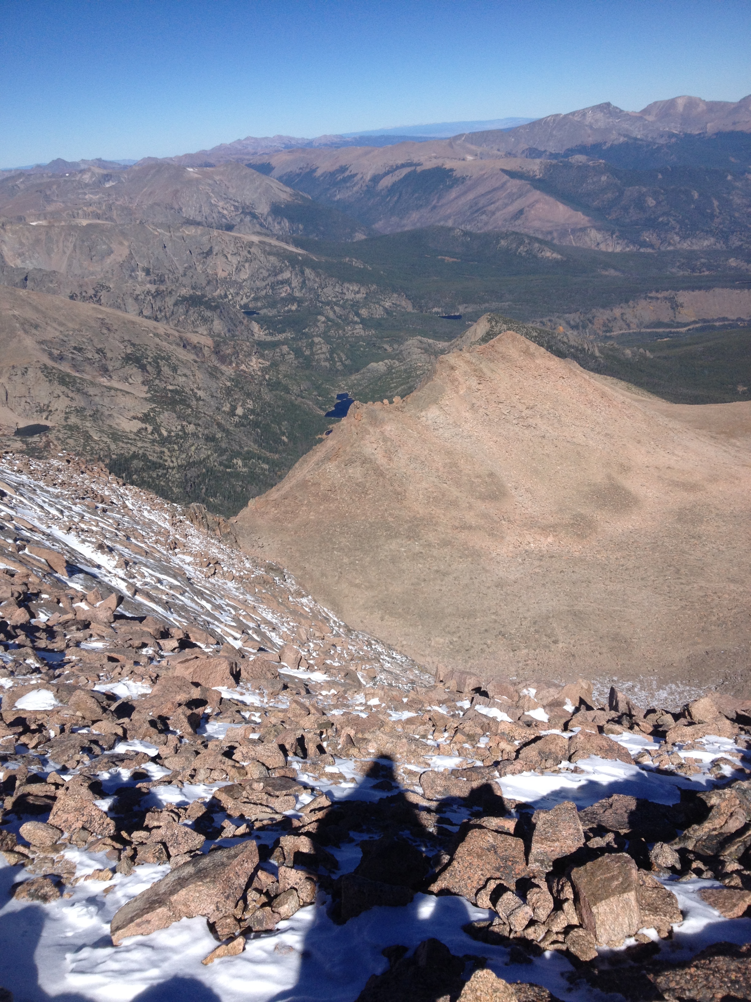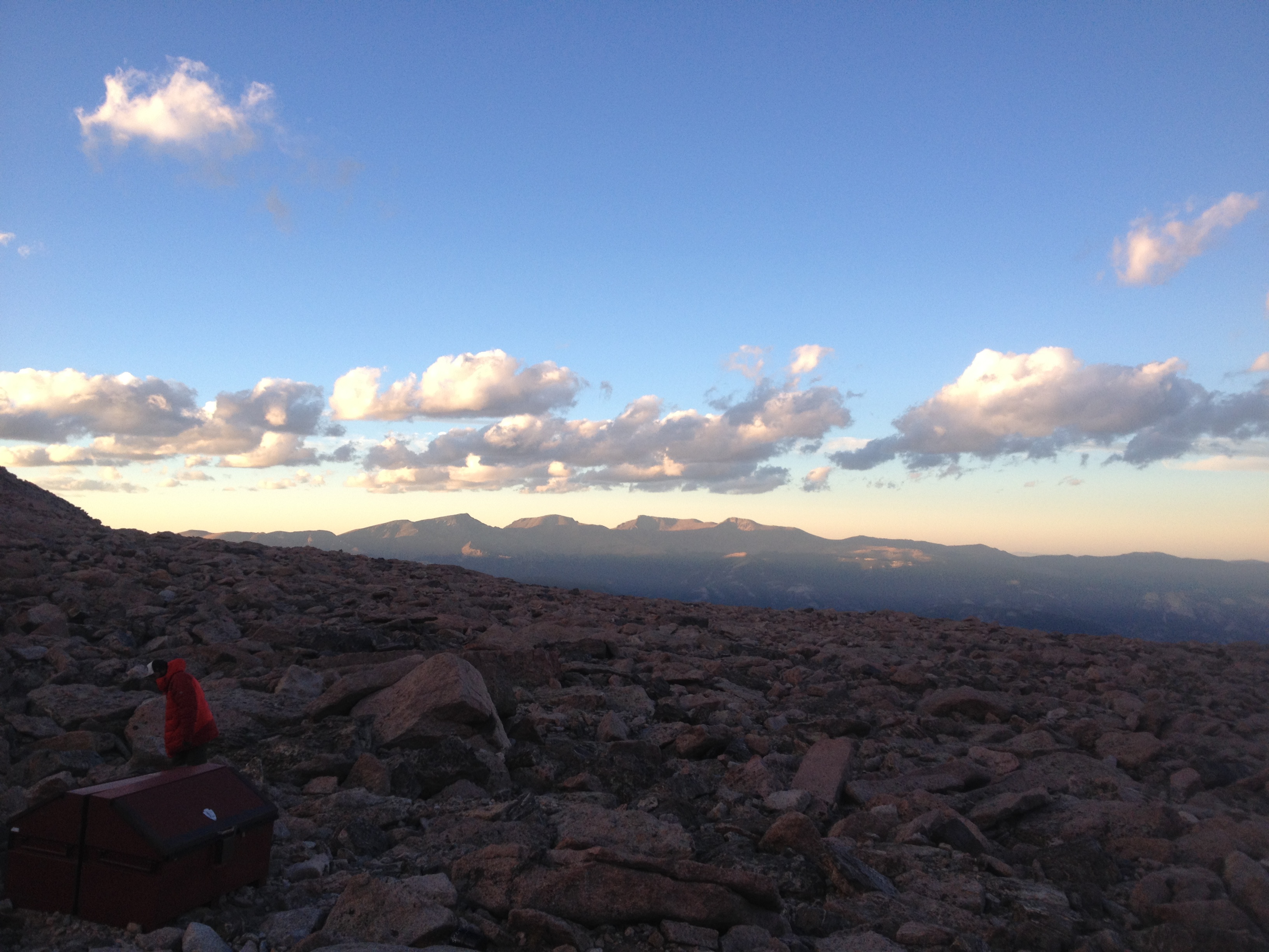 Summer was fading away and fall was already in full force in the high country. Pat “Perry” Johnson and I decided it was time to knock out a Front Range 14er that we had waited to do until tourist season was over, Longs Peak. We planned to depart from the trailhead in Estes Park on a Sunday morning, camp at the Boulder Field right below the Keyhole, and summit Longs Peak the following day. This would hopefully ensure relatively low traffic on the route and allow us to enjoy an unfamiliar area without the congestion it typically attracts in the summer months. I talked to a ranger a few days before to make sure a campsite was available and work out any fees we would need to pay before heading up on the mountain. He informed me that the Trough section of the route contained both ice and snow so I decided it was a good idea for Perry and I to bring an ice axe and crampons to be on the safe side. We made our way to the trailhead early Sunday from Breckenridge and started our approach to basecamp later that morning. After one of the windiest approaches either one of us had ever experienced we arrived at the Boulder Field, setup camp, and relaxed, mostly in our tents to escape the incessant wind that persisted throughout the night.