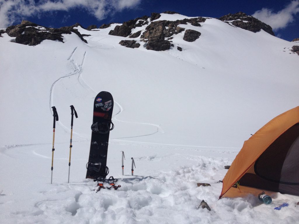 After setting up camp we decided to practice some alpine rope skills on the various obstacles above camp. Once finished, we took a quick skin around the area and were able to have a fun run back into camp. Satisfied with a great day in the alpine, we settled in for the evening after making water and eating dinner.
